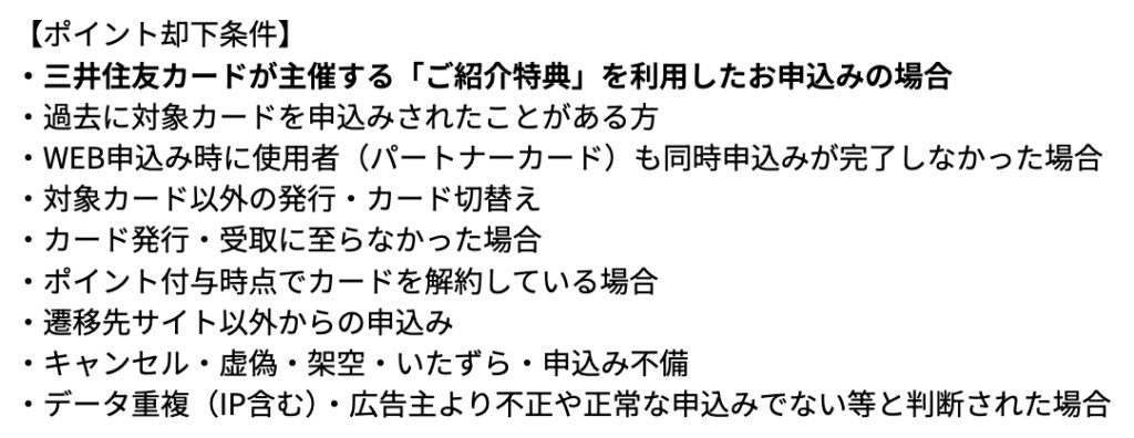 三井住友カードの「紹介キャンペーン」の利用もNGなので、この点もご注意を。