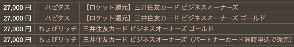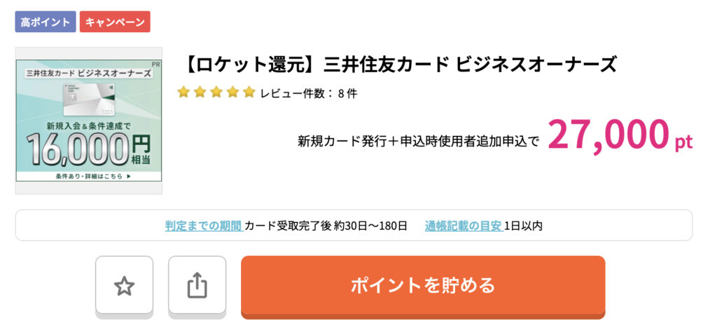 ハピタスさんの「三井住友ビジネスオーナーズ」案件の詳細がこちらですね。